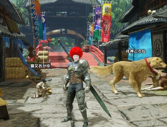 何がとは言わないがモンハンで猫と犬をお供にできると聞いてドナルドでお出迎えしました #おにぎりゃー #絵かゆ #できたてころね #ころねすきー