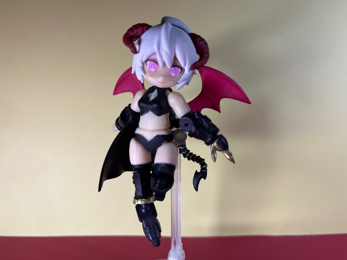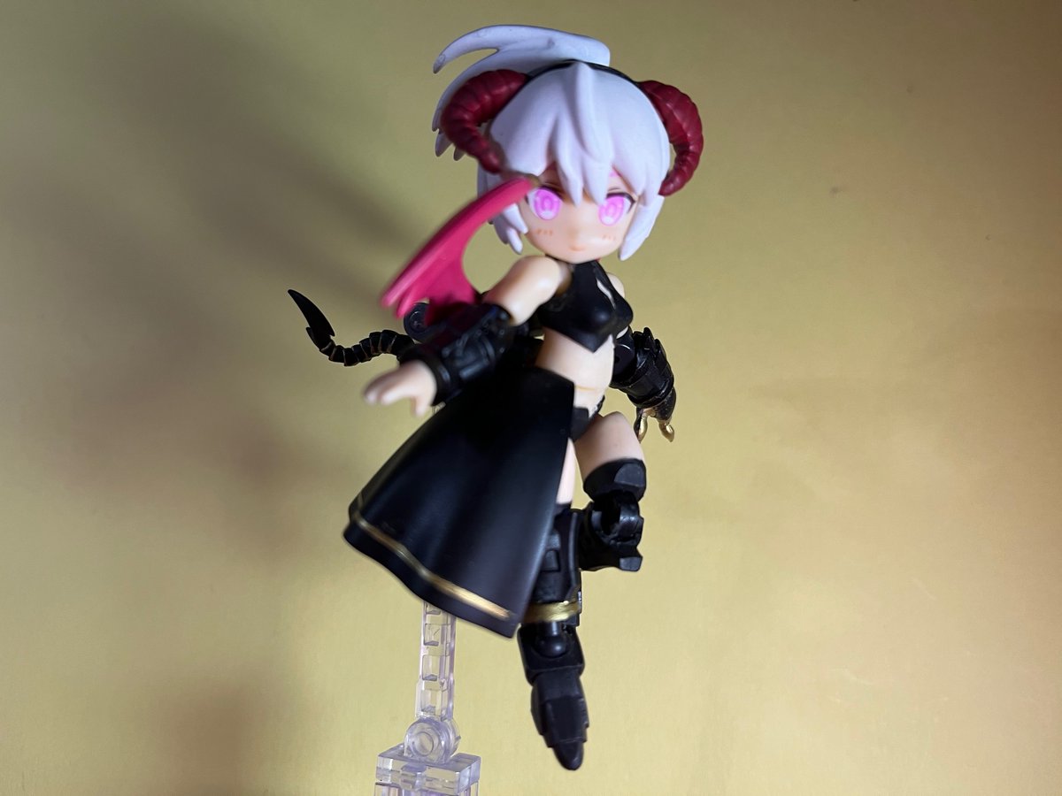 #デスクトップアーミー シルフィーを悪魔っぽい感じにしてみました。 山羊っぽいツノか鬼みたいなツノか、小さい羽を付けてもいいかなぁ、なんて30分ぐらい悩んでみたり。付け替え用にカチューシャみたいなパーツだけ沢山欲しい…