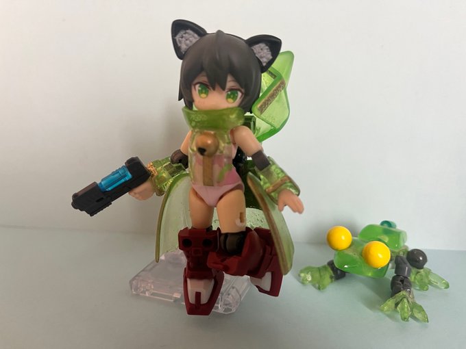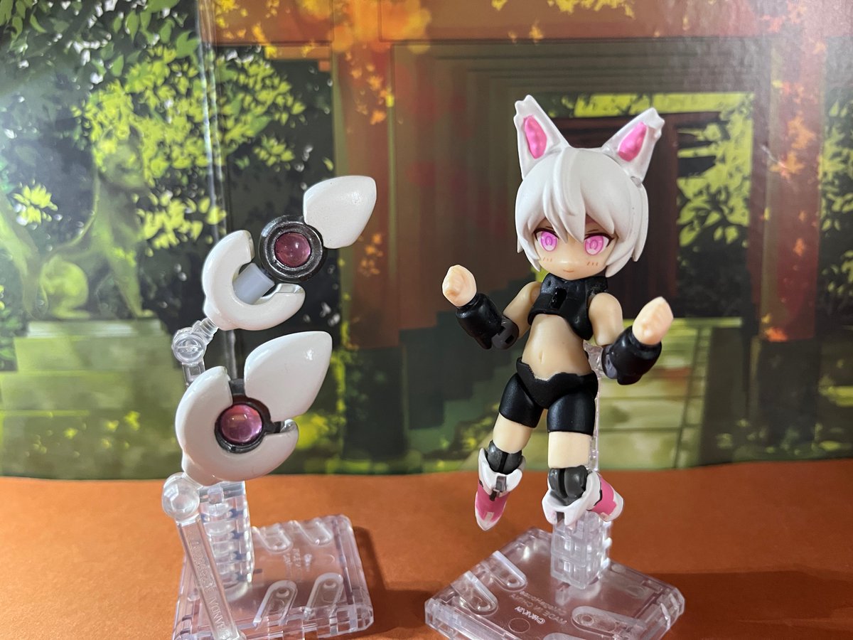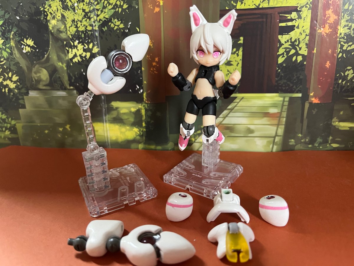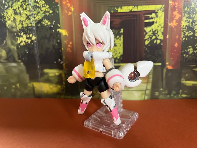 #デスクトップアーミー GW前辺りから改造してたキツネっ子、とりあえず完成。 尻尾は切り離してビットとして動かせるみたいな設定です。 尻尾が私的こだわりポイント。中心部分はレジンを使ってクリアにしてみました。