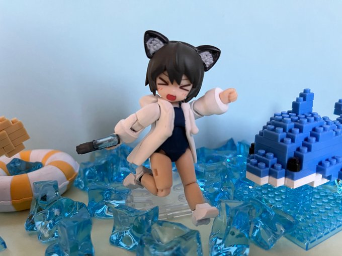 #デスクトップアーミー ちょっと夏っぽく水着パーカーのボディを作ってみました。 パーカーはパーツの付け替えで取り外せるようにしたのですが、布で作った方が良かったかも。 …まぁ私には布工作できないので無理なのですが。(´ω`)💦