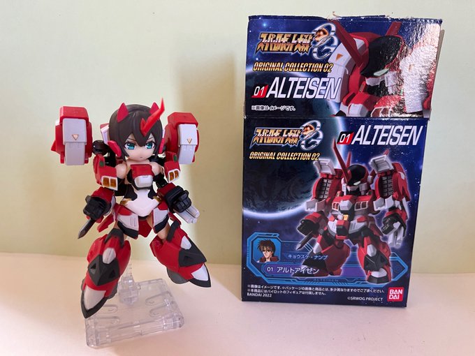 #デスクトップアーミー この間買ったアルトアイゼンと朱羅を組み合わせてメカ少女を作ってみました。 パーツの付け替えで展開状態にできる肩パーツが改造用の素材にいいですね。もう1個ぐらい買っておこうかな?