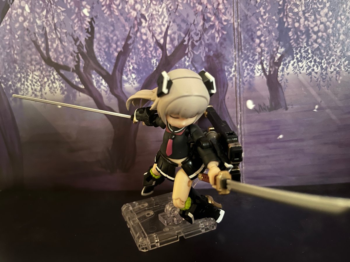 #デスクトップアーミー 重兵装型女子高生 壱 組み立てました。 日本刀持った女の子はいいですね。 カッコかわいくて大好きです。 腰の鞘から抜こうとするポーズや顔の横で両手で構えるポーズとか日本刀特有のカッコよさがあると思います。