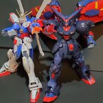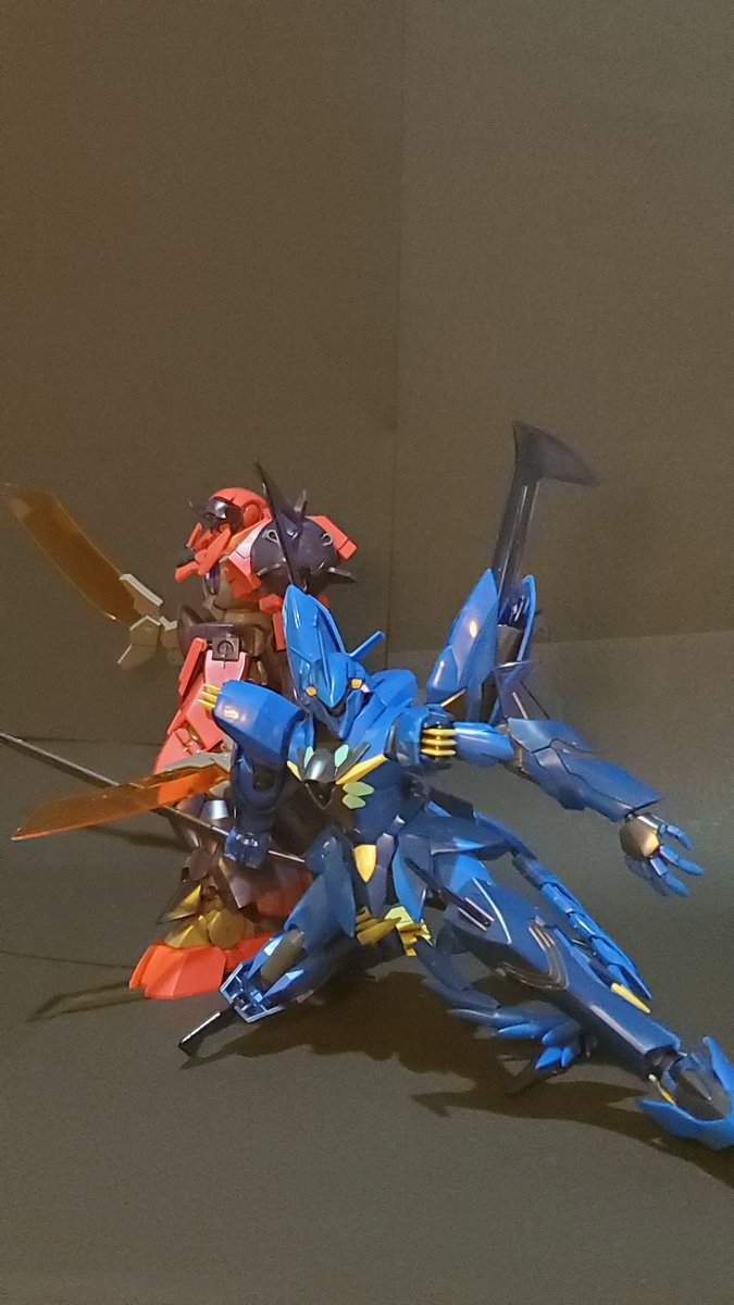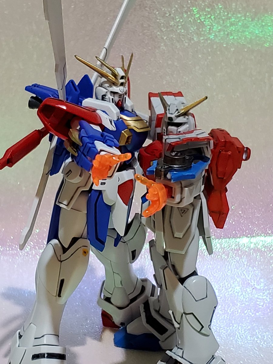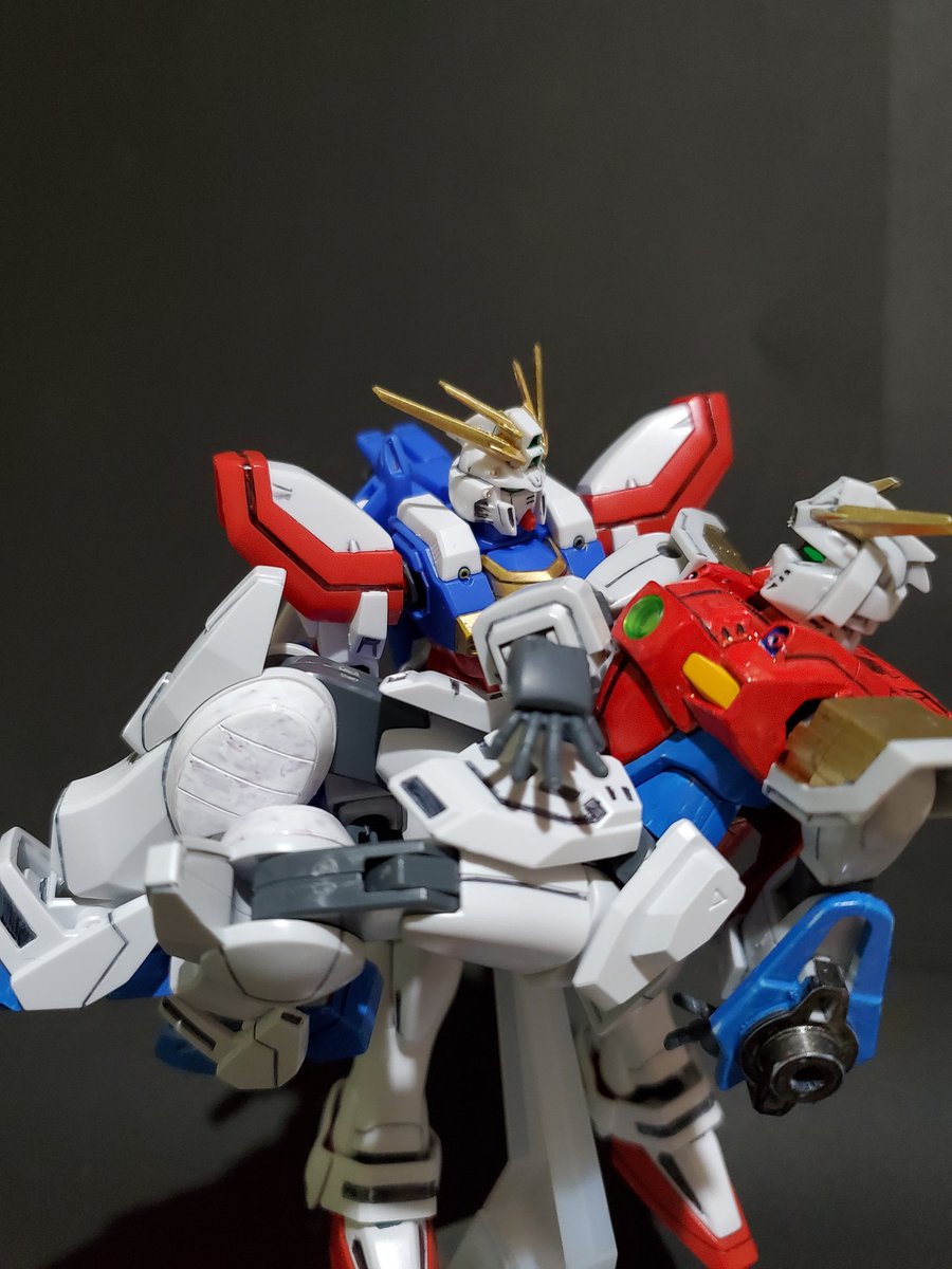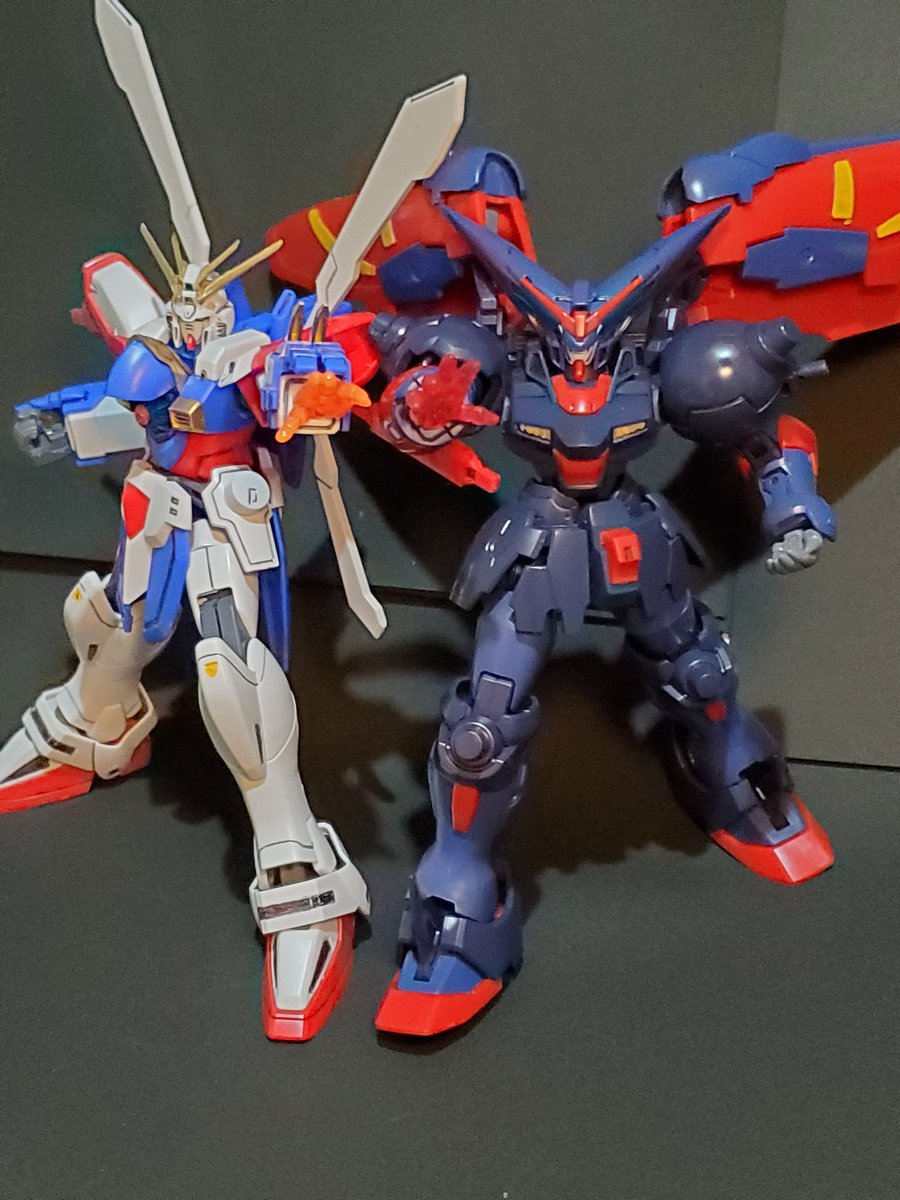 年末年始会議中の プチッガイ達を横目に(笑) 12月=師走なので、ガンダム界の 師匠と言えば、やっぱりこの方、 マスターガンダム完成です。 急に思いついたので軽い塗装とスミ入れだけですが中々に カッコいいです。さすが師匠❗ 最後は弟子と共演😊 #ガンプラ #見よ東方は赤く燃えているぅ~