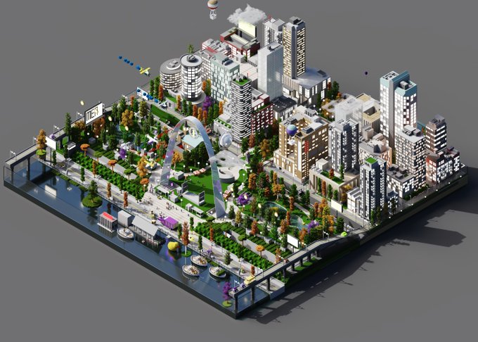 my 3rd piece city voxel animation is finish. This piece tells the story of the chaos of st. louis, missouri where villains chase and war in the sky.🌞🌞 #NFTTHAILAND #NFTshill #nfts #magicavoxel #voxelart