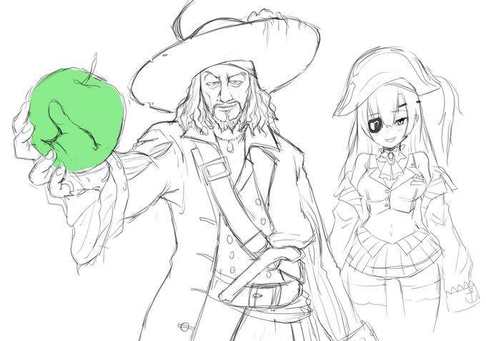 今日の落書き バルボッサと髪下ろし船長 マリン船長のおまけ感が酷いw #マリンのお宝