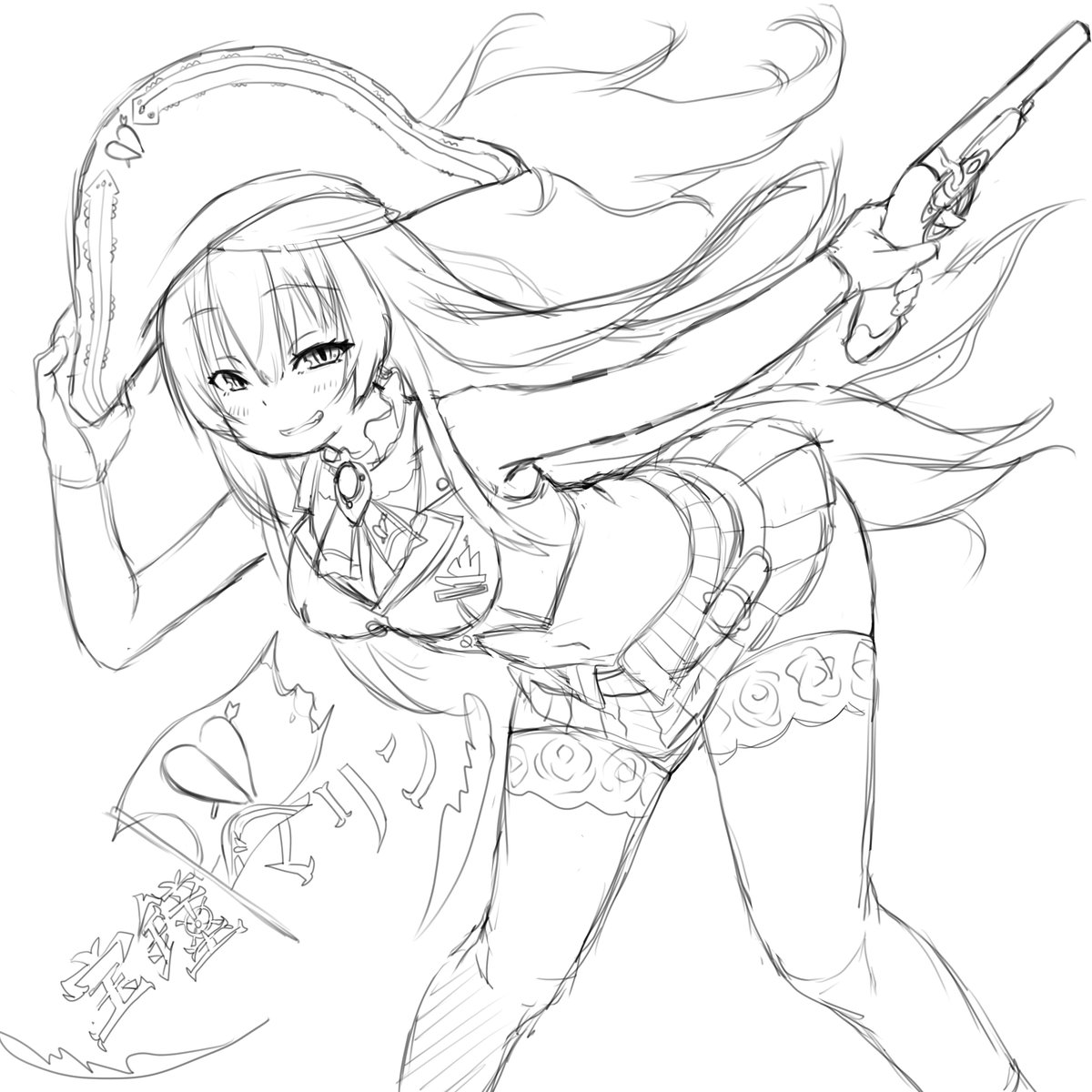 今日の落書き 早描きゴスロリ船長 #マリンのお宝