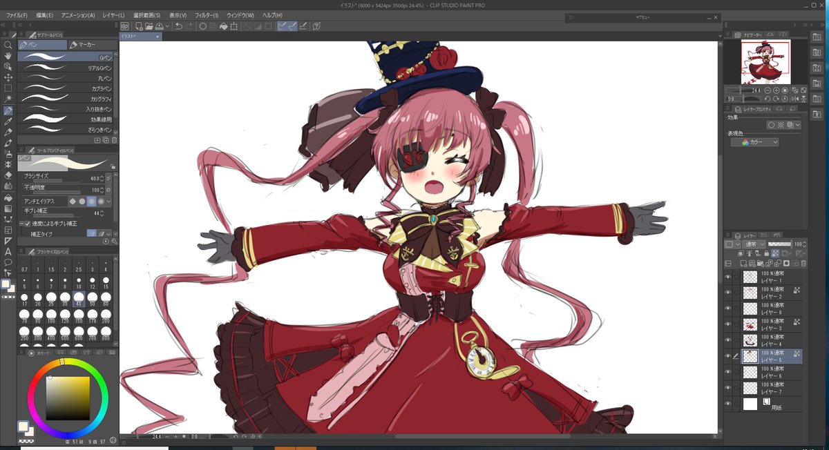 6 36 今日の落書き 早描きゴスロリ船長 #マリンのお宝 21/08/20 00:35
