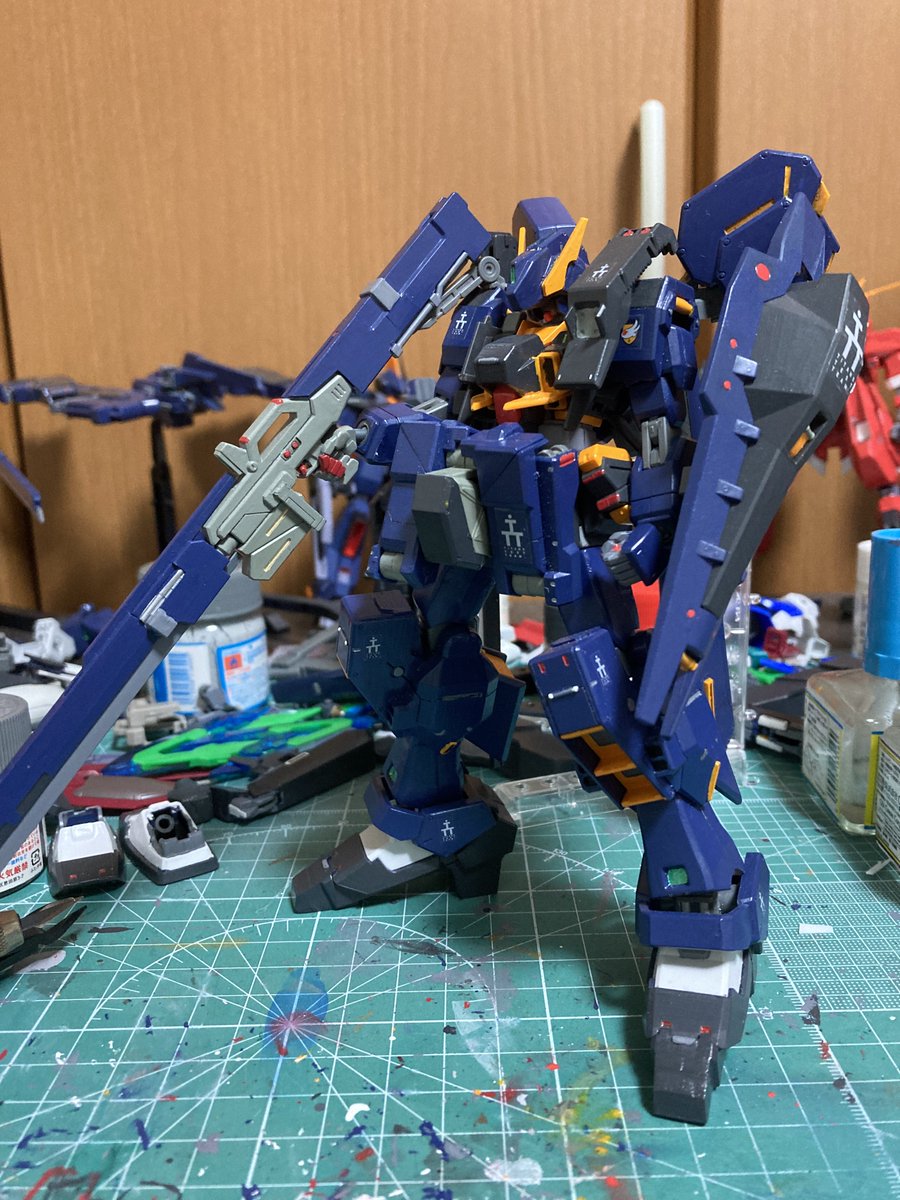ハイゼンスレイⅡ・ラーを若干塗り直してきた。やっぱゴールドより黄橙色の方が綺麗だわ #ガンプラ