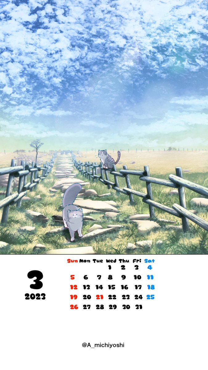 今月もよろしくお願いします。 2023年3月のスマホ用待ち受けカレンダー。 個人利用の範囲内で自由にお使いください😄 #イラスト #ペット