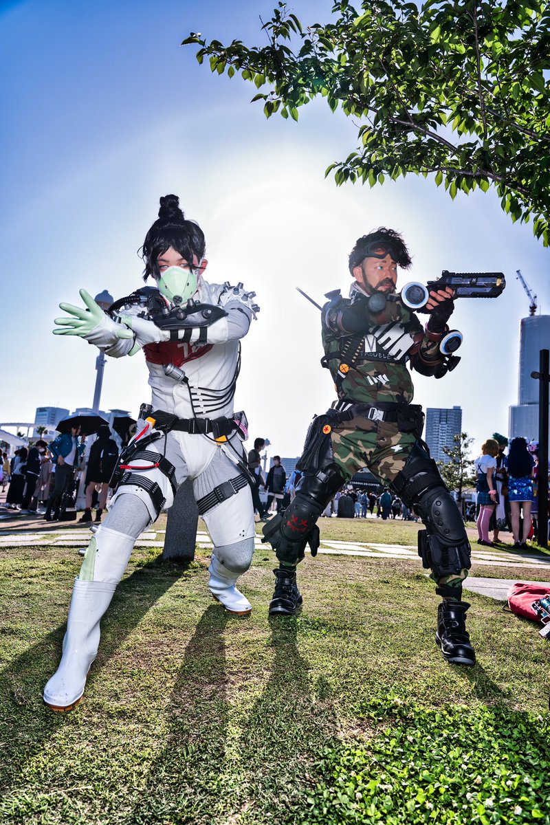1日目 #APEX ミラージュ 1~3枚目@maro_maro_06 さん 4枚目@ken2_zweiswordさん アッシュ @mrzr615 さん #コスサミ2022 #コスサミ 暑い中撮影ありがとうございました!