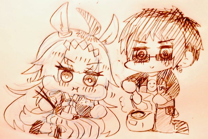 0 8 @tos ふと思いついたネタ もう一人はまた…(筆圧の関係上腕が限界) #長尾夜百景 #セクハル 21/06/18 01:55
