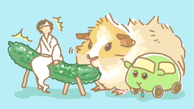 #PUIPUIBIRTHDAY わさびちゃん誕生日おめでとう~🥒 瓜を沢山描きました