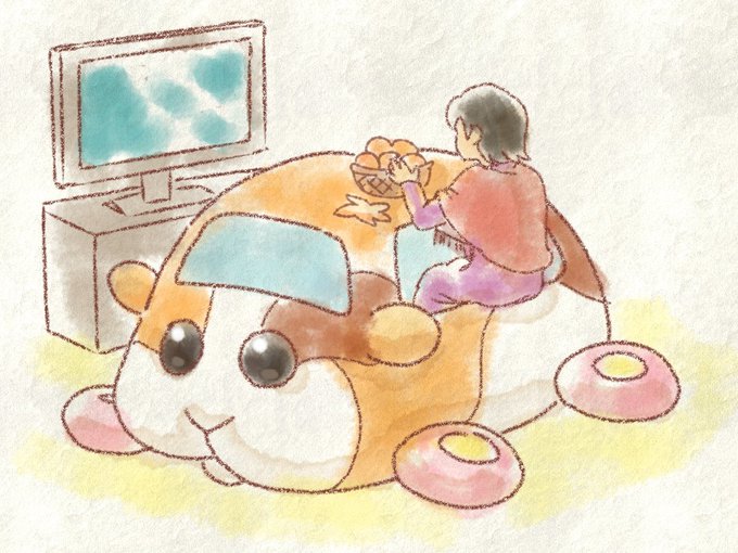 らくがき。モルカー箱乗りしたらあったかいだろうなと…外ではだめですよ。ヒデヨシちゃんなら足暖めてくれそう