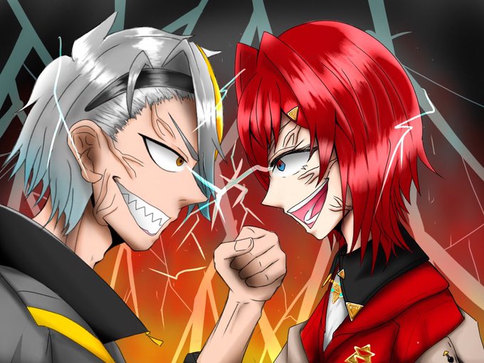 なんかエモい感じのチャイちゃんとやしきず やしきずにタバコくわえさせたのはかっこいいと思ったから ねぇ、ほんとに色塗りわかんない💦 #社築納品物 #お花畑青空大写生大会
