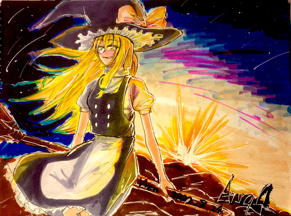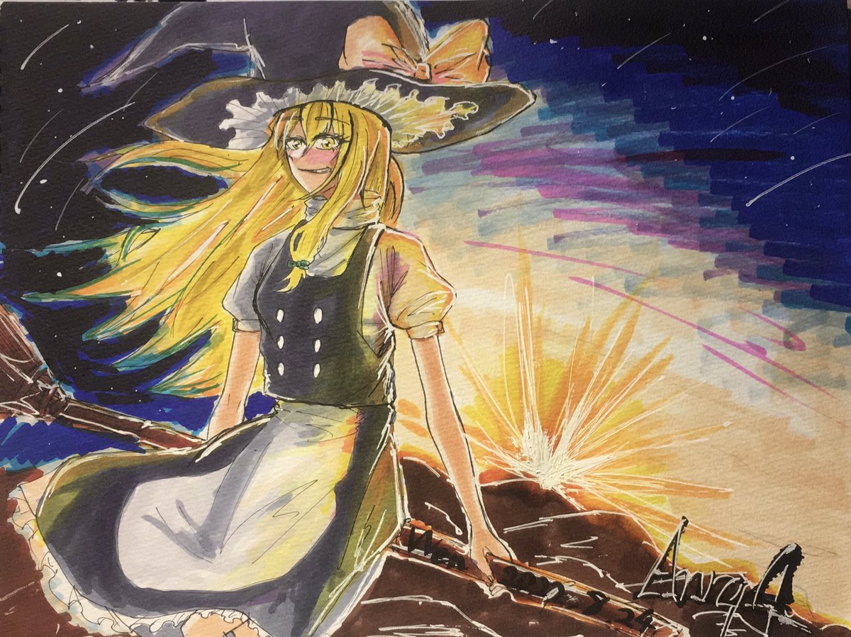 1 9 毎年魔理沙チャレンジ4年目 夕焼け描くのめっちゃ楽しいぞ #イラスト #霧雨魔理沙 #夏休みはフォロワーさんが増える 22/08/25 00:59
