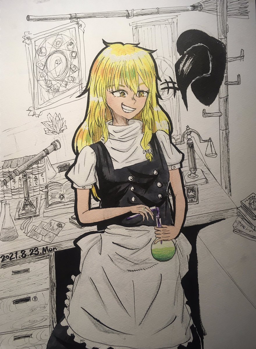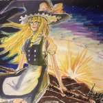毎年魔理沙チャレンジ4年目 夕焼け描くのめっちゃ楽しいぞ #イラスト #霧雨魔理沙 #夏休みはフォロワーさんが増える