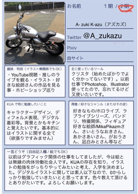 #春からKUA通信イラストレーションコース テンプレートお借りします。 色々ありましたが、やっと入学許可頂きました。二期生3年次編入になります。デジタルイラストは0どころかマイナスからのスタートなので、一から学んでいきたいと思ってます。皆様どうぞよろしくお願いします。