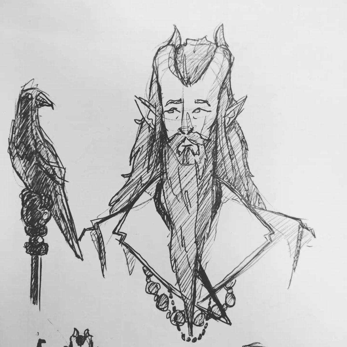 Sketches of my DnD character Hovenhalk in his older age - Hovenhalk Crowfather #drawing #art #sketch #doodle #pen #ink #ballpointpen #ballpointpendrawing #dnd #dndart #dndcharacter #originalcharacter #characterdesign #tiefling #wizard #staff #hat #fantasy #fantasyart #rpg #bird