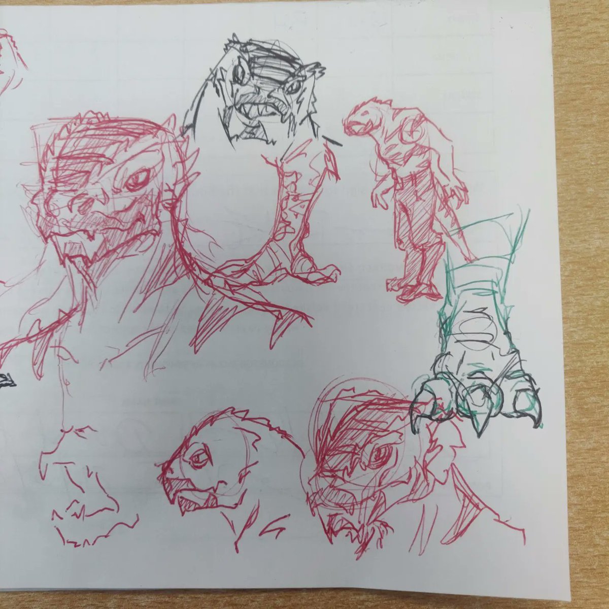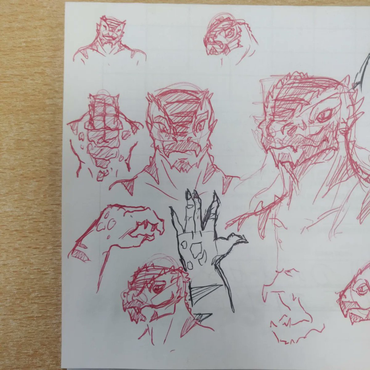 The work break drawings strike back. #drawing #art #sketch #doodle #tiefling #wizard #dndcharacter #dnd #dndart #horns #girl #sidecut #originalcharacter #cute #dragonborn #scalie #imgonnaregretthatine #character #characterdesign #pen #ink #ballpointpen #red #purple #black #pink