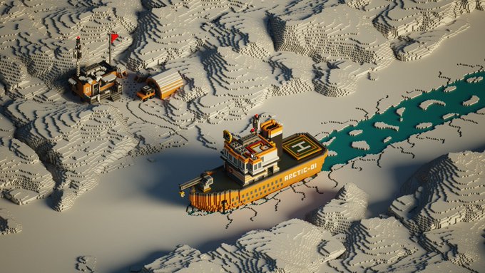 "The Journey" made with #magicavoxel by @ephtracy | #voxel #voxels #voxelart #3D #3drender #3dart #landscape #plane #Greenland #ice