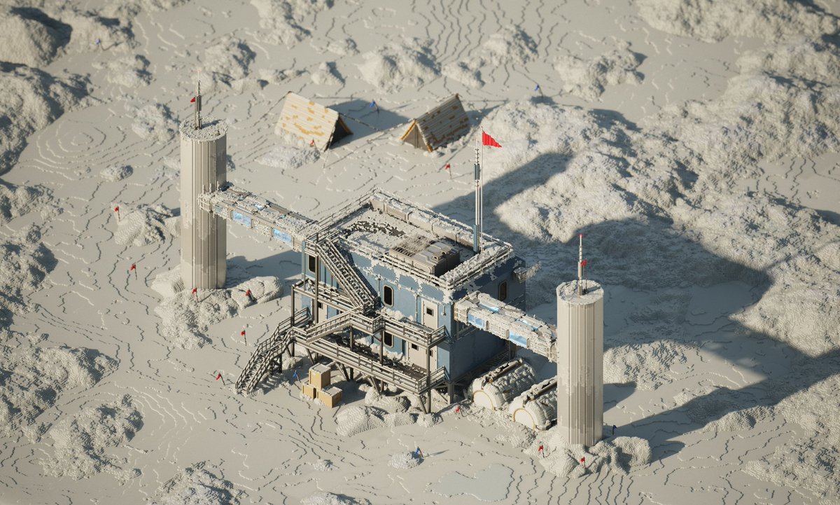 Antarctica scientific base made with #magicavoxel by @ephtracy | #voxel #voxelart #3d #3drender #antarctica #snow #science