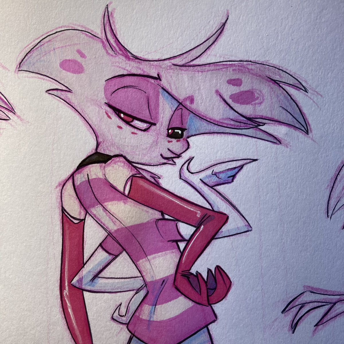 209 1581 AngelDust full pg traditional pens £40 DM if interested. Lots of cons coming up, message me if you would like something. #AngelDust #HazbinHotel #artistsontwitter 22/05/07 06:02
