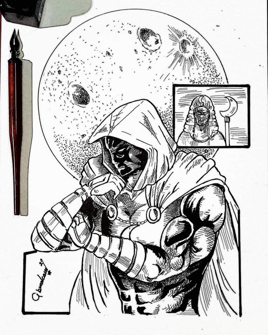 Siguiente palabra y día 18 #day18 #inktober #inktober2021 #inktober2021day18 #inktober2021moon #moon #luna siguiendo con los #superhores es el turno de #moonnight #marvel #marveluniverse #marvelcomics El Dios de La Luna Egipcio reencarnó....!!! #inktobermexico #tintachinaart