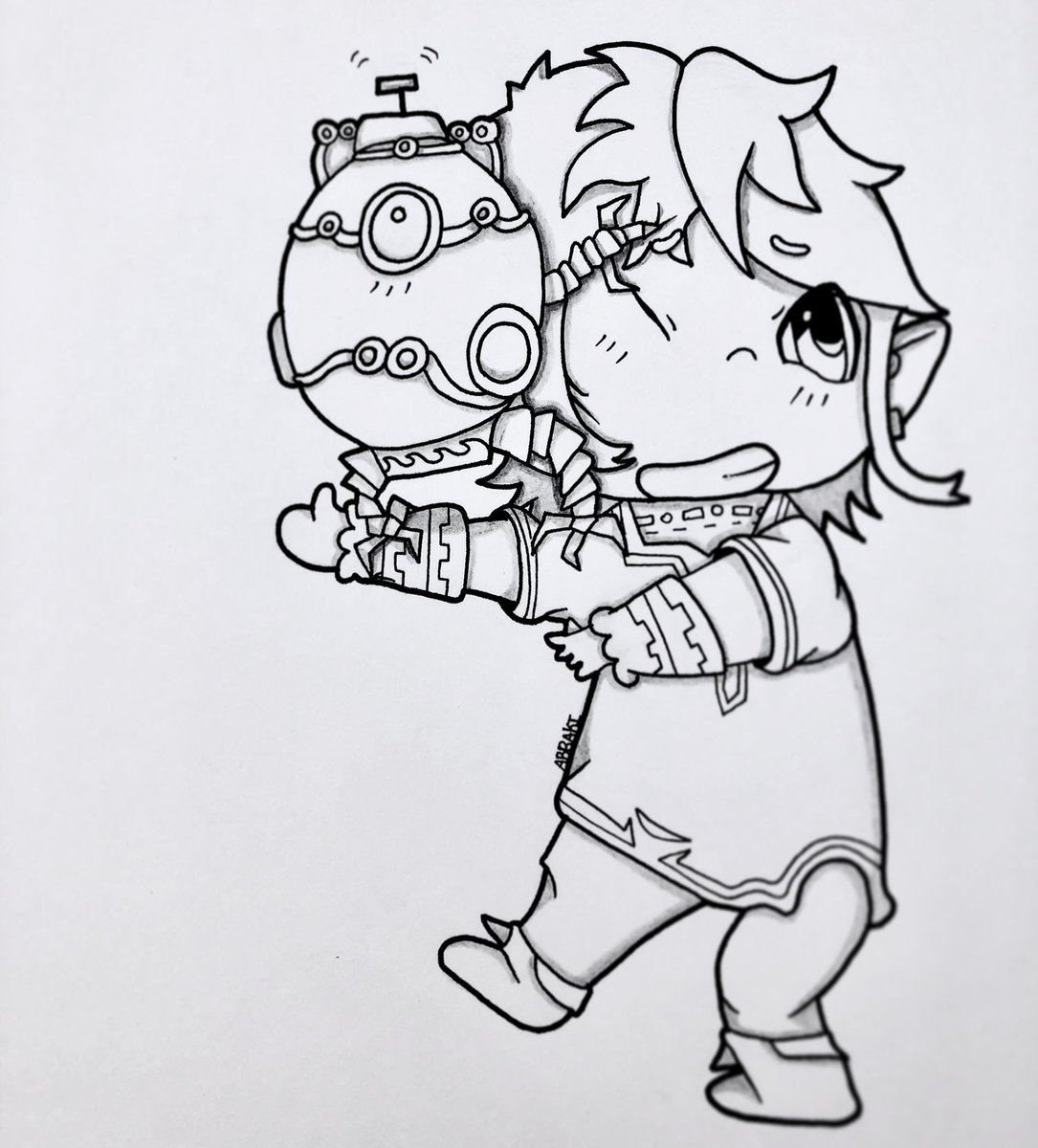 Day 25: Buddy It seems like Link just found a new little buddy 💙 #inktober2020 #Inktober #inktober2020day25 #buddy #littlebuddy #Link #tloz #botw #thelegendofzelda #Zelda #zeldaart #HyruleWarriors #AgeOfCalamity #babyguardian #guardian #Nintendo #NintendoSwitch #fanart #art