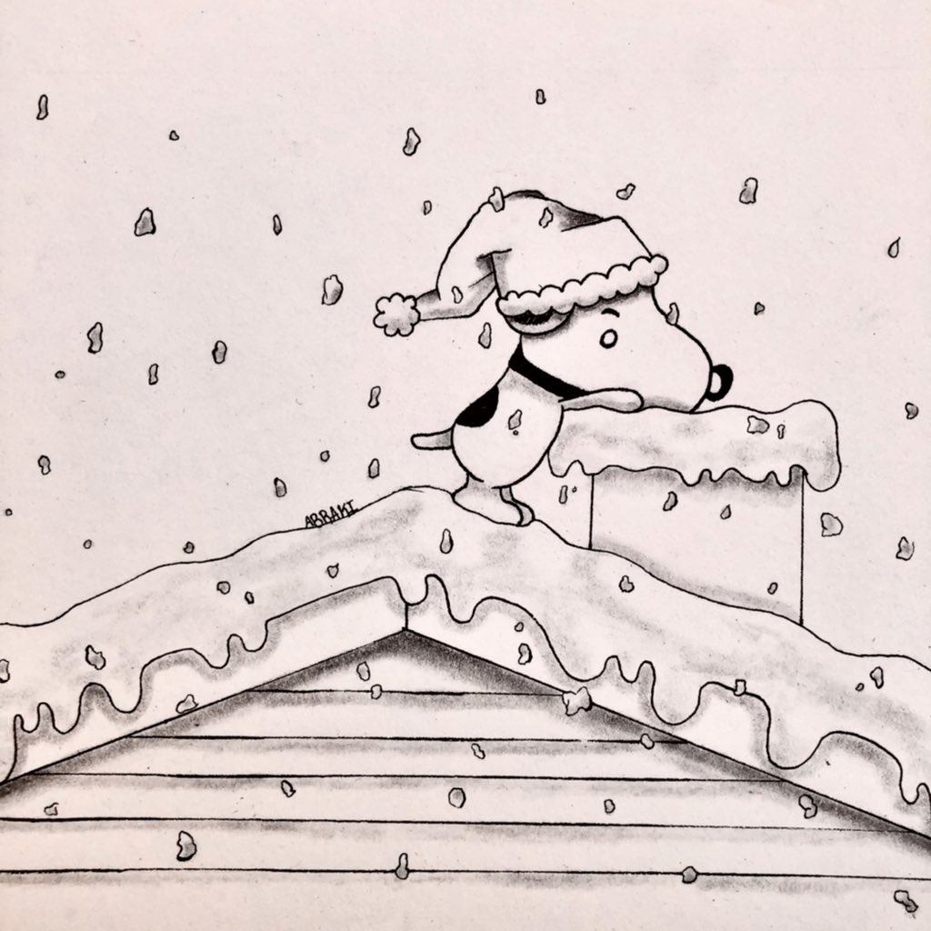 Day 13: Roof Some Christmas vibes here ❤️ I think Snoopy is helping Santa! #Inktober #inktober2021 #inktober2021day13 #inktober2021roof #Snoopy #SnoopyFanart #Christmas #Christmas2021 #ChristmasDrawing #snow #roof #ink #fanart