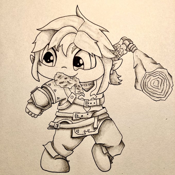 Day 28: Crispy Fighting Bokoblins while eating some extra crispy chicken 🍗 #inktober #inktober2021 #inktober2021day28 #inktober2021crispy #zelda #zeldafanart #thelegendofzelda #tlozbotw #zeldabreathofthewild2 #nintendo #nintendoswitch #nintendofanart #ink #pencil #fanart
