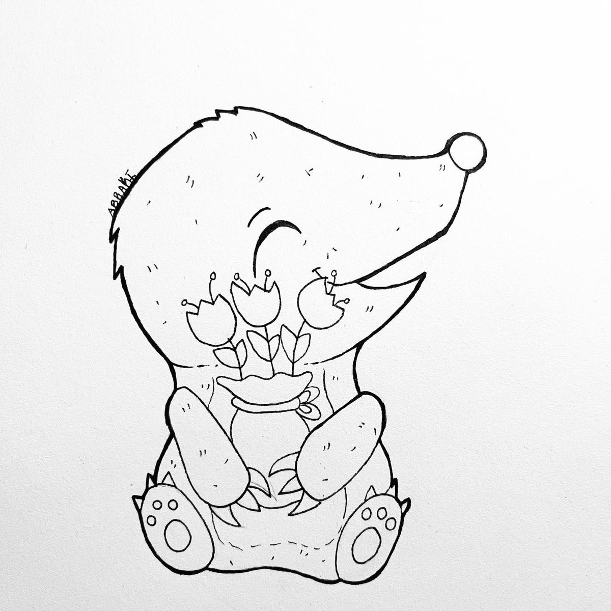 Day 6: bouquet This little mole loves the flowers 💐 #inktober #inktober2022 #inktober2022bouquet #inktober2022day6