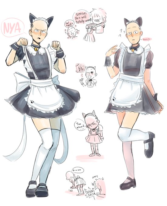 I can't forget about that CD drama where genos basically suggested saitama to wear a maid costume with cat ears #OnePunchMan #saitama #genos #anime #animefanart #drawing #digitaldrawing