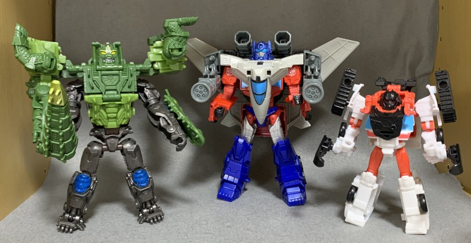 #皆でトランスフォーマーを楽しもう 個人的にTFの魅力は「多様性」にあると思って ・基礎であるVSコンセプトを楽しむ ・和製のヒロイックさを楽しむ ・逆にあえてキワモノ路線を突き進む ・映像に出てないキャラのバイオに思いを馳せる ・いっそ変形しないのも楽しむ …と楽しみの幅が超広い所が好き