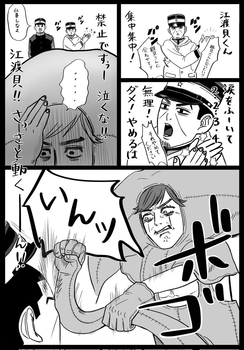江渡貝くんが石炭投げてくる時の「いんッ」が好きなので描きました 一生懸命を感じるし、なんか江渡貝くんらしいかけ声だよね 続きます