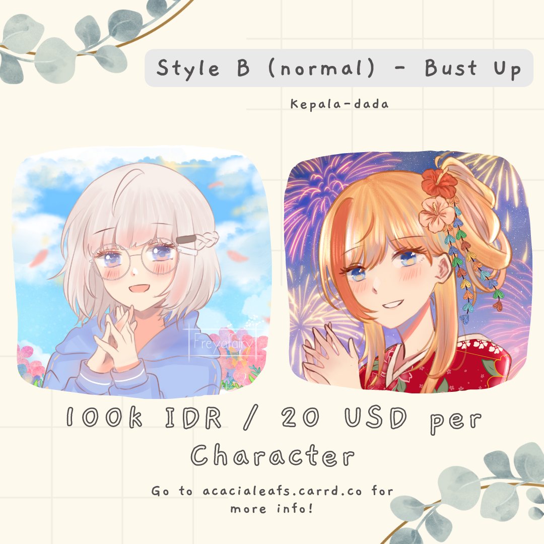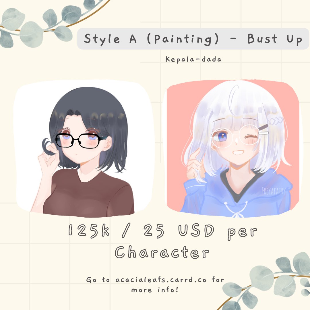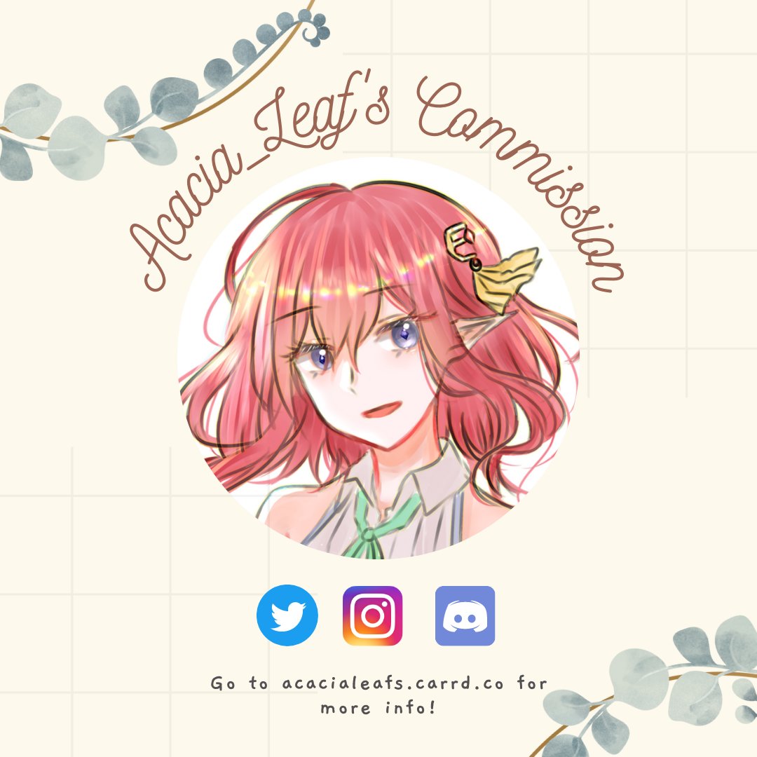 [Commission open] Haloo aku buka komisi lagi, tapi kali ini dikerjainnya per tanggal 28 Februari karena lagi BU tapi lagi ada kerjaan :"D Harga yang di acacialeafs.carrd.co masih belum diupdate jadi liat dari sini aja ya ✨ @cmsn_ART #commissionopen #artidn #commissions