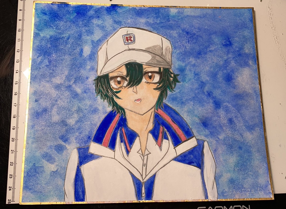 0 1 #色紙 #テニスの王子様 #越前リョーマ #水彩 友達の誕生日プレゼントでリョーマ様を描きました!! 22/05/28 22:26