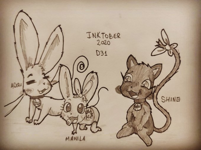 The only image with Manila being a baby... How cute... And this is the first time I've finished a #inktober ... Even if it's out of date... #sketch #traditionaldrawing #inkdrawing #inktober2020 #pencil #doodle #originalcharacters #oc #furryart #cute #draw #drawing #dibujo