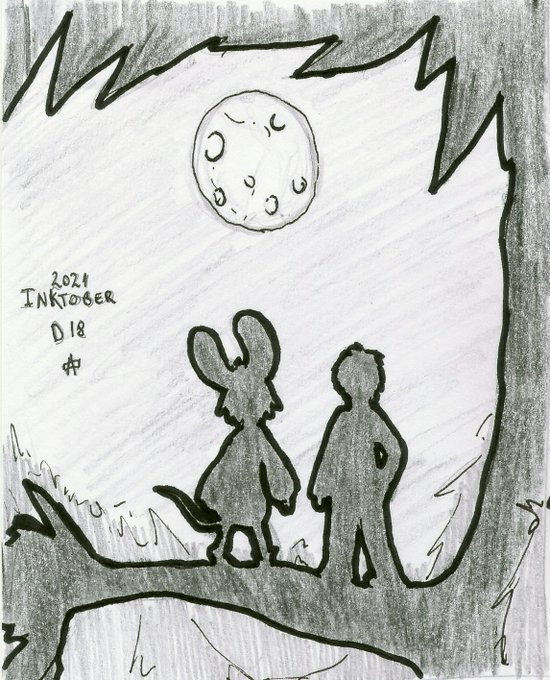 #inktober 2021 D30 D31. I already had this drawing on Saturday, but I'm lazy. Someone who has a tendency to "slide" tries to surprise a creature that lives for the "risk". #inktober2021 #draw #drawing #traditionalart #pencildrawing #pencil #cute #artchallenge #dibujo #lapiz
