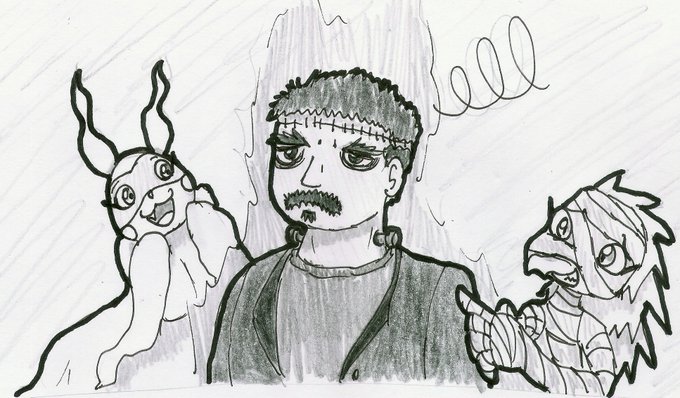 #inktober 2021 D28. Orange: He's alive! Shing: And "crispy". Orange: Esta vivo! Shing: Y "crujiente". #inktober2021 #traditionalart #traditionaldrawing #draw #drawing #furry #halloween #pencildrawing #pencil #dibujo #lapiz
