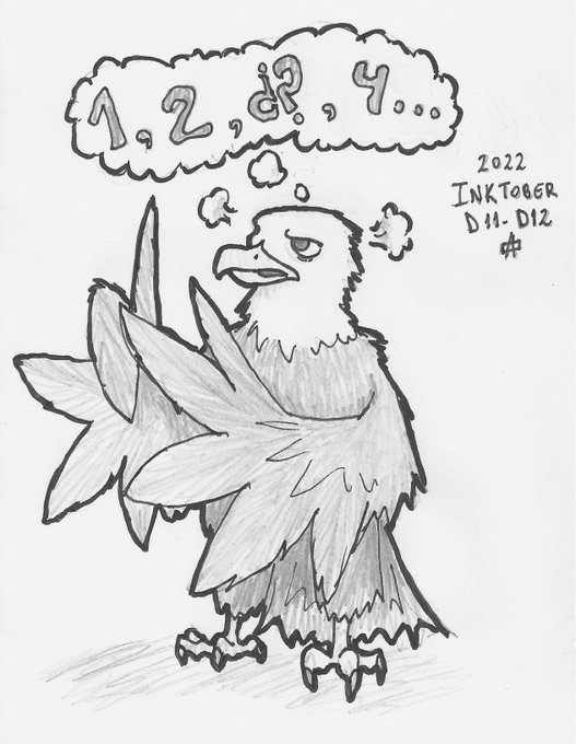 Inktober 2022 day 11 and day 12. An "eagle" that tends to "forget" numbers. How odd. ------------------------ #inktober #inktober2022 #traditionalart #traditionaldrawing #pencil #pencildrawing #inked #originalcharacter #drawing #draw #dibujo #dibujotradicional #lapiz