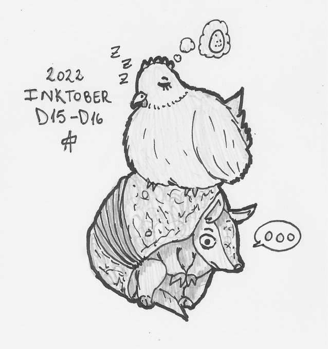 Inktober 2022 day 15 and day 16. This "fowl" dreams that this "armadillo" is an egg. ----------- #inktober #inktober2022 #traditionalart #traditionaldrawing #pencil #pencildrawing #inked #originalcharacter #drawing #draw #dibujo #dibujotradicional #lapiz