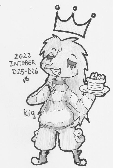 Inktober 2022 day 25 and day 26. Here is little Kig with her big "ego" and her "tempting" cake. ------------- #inktober #inktober2022 #traditionalart #traditionaldrawing #pencil #pencildrawing #inked #originalcharacter #drawing #draw #dibujo #dibujotradicional #lapiz