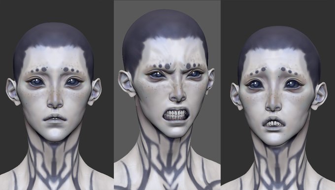 I made him teeth, so have a few funny faces while I'm at it. #characterart #alienboy still #wip