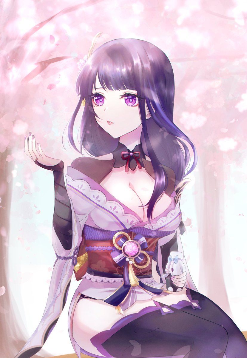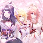 #今月描いた絵を晒そう 桜元素な蛍ちゃんと雷電将軍と八重神子でした🌸🌸🌸