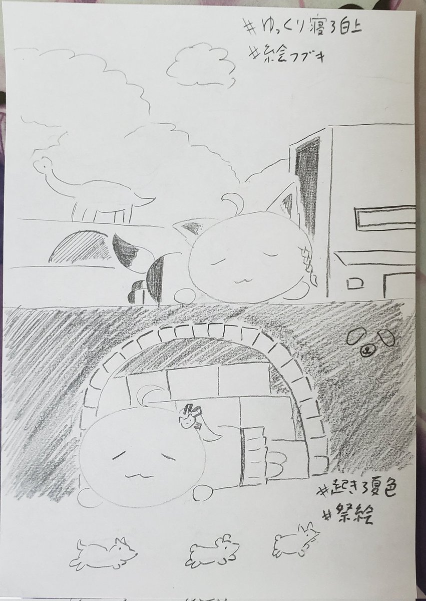 今更だけの昨日の描いた! #ゆっくり寝ろ白上フブキ #絵フブキ #起きろ夏色 #祭絵 線の濃さがめちゃめちゃだーw