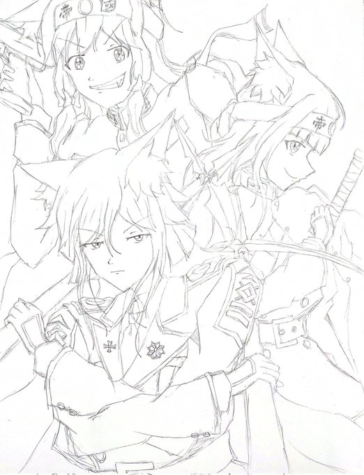 #今日の落書き 帝國陸軍三銃士 スパーク中将長×あすみん×万櫻