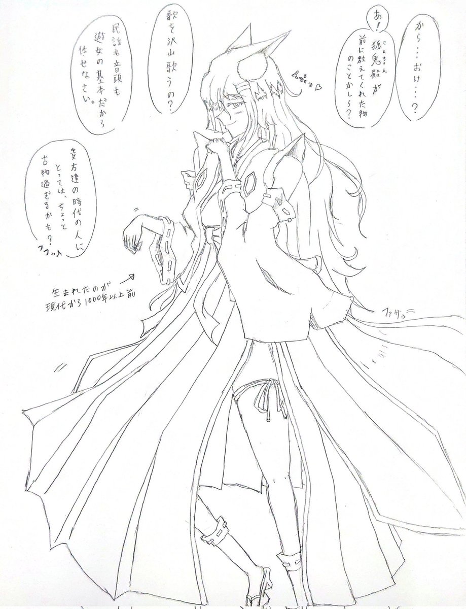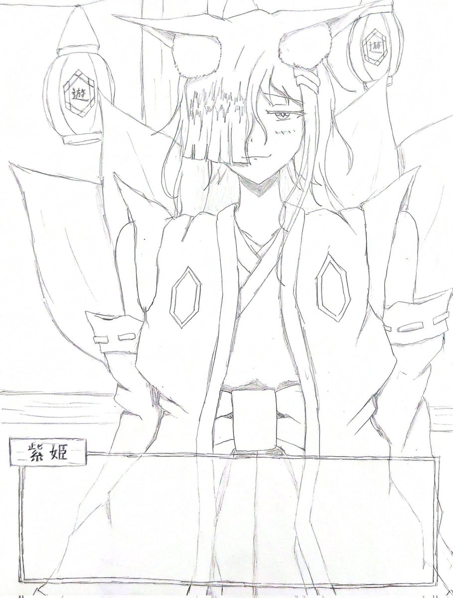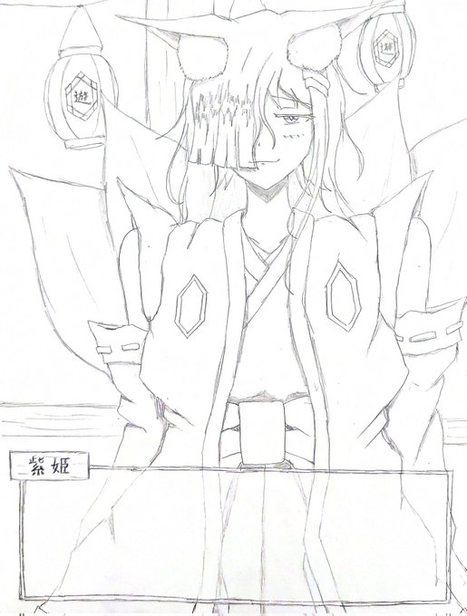 1 5 #今日の落書き ゲームにありそうな構図で描いた 珍しく狐口な紫姫 しゃべっている台詞はご想像にお任せします😂 22/10/27 16:12