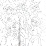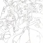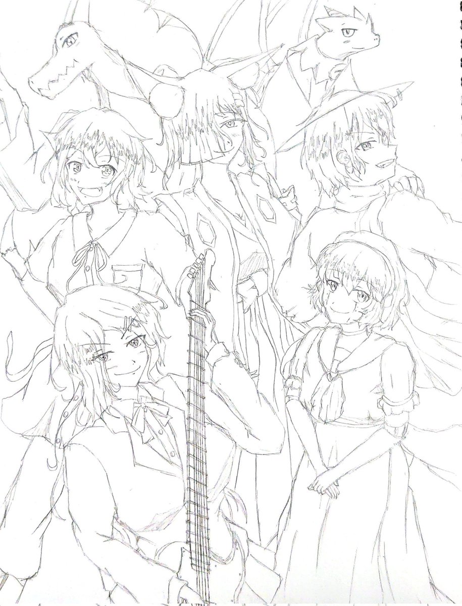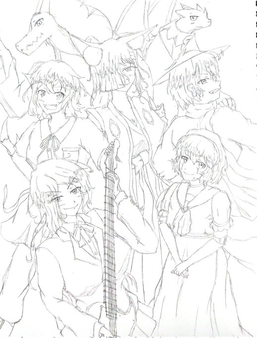 #今日の落書き よ~~~~~~~~~~うやく描いた 主人公(ナイフ持ってる奴)とその周辺のメインキャラ達 不純物が混ざってる?ハハッご冗談を||
