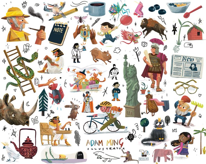 Hi I’m Adam Ming, illustrator of fact, fiction and humor represented by the wonderful @LydiaRSilver 🏅 - if you have a project that might be a good fit we’d love to hear about it! #kidlitartpostcard #kidlitart #ChildrensBooks #illustration #animalillustration