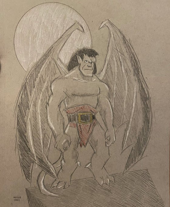 Inktober Day 18: Moon—Goliath Watching! @ImKeithDavid #inktober2021 #Inktober #gargoyles #Goliath